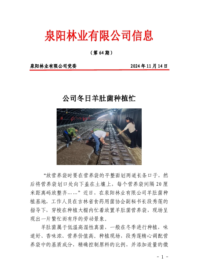 泉陽林業(yè)有限公司信息2024年第64期